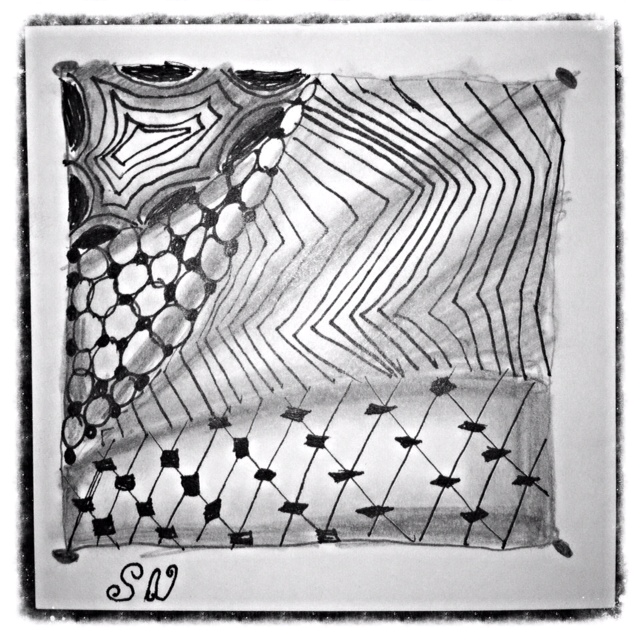 Sunday we picked up our nieces for a fun filled day of swimming, movies, s’mores and more! We all had a blast just doing simple things and having good quality time together. Our nieces spent the night only to wake up the next morning to blueberry pancakes courtesy of my husband (go ahead and say it- we are so spoiled!). Before we left our abode to Grandma’s Labor Day get together, I had a impromptu Zentangle lesson with our second oldest niece Sam.