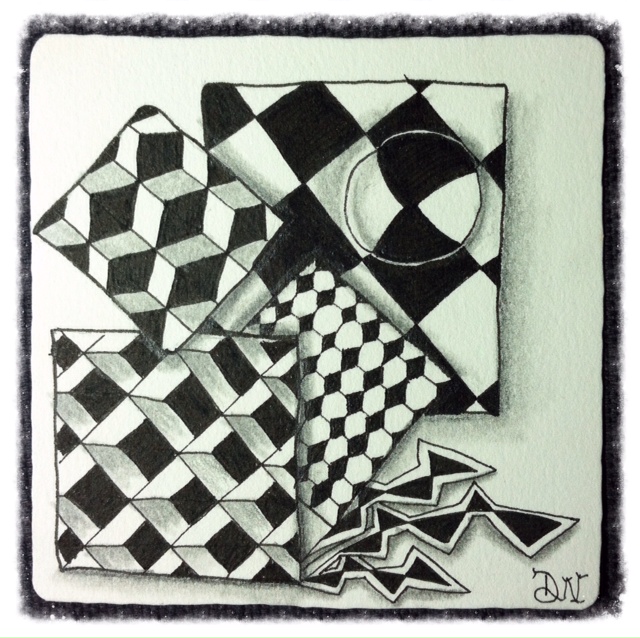 Squares, diamonds and triangles- oh my! Geometric grid patterns was the theme for today’s tangled tile. As a child I always loved working with basic shapes. Later in life in college, I had a knack for breaking down complex imagery to basic shapes and patterns to create an abstract version of a drawing. I remember I had to do this as a part of an assignment and loved the result of decomposing a picture to the most simplest of structures. It definitely helped me “see” as an artist sees the world around them. As an artist, more often than not, the world is not as complex as we might see it at first but just need to change how we view it.
