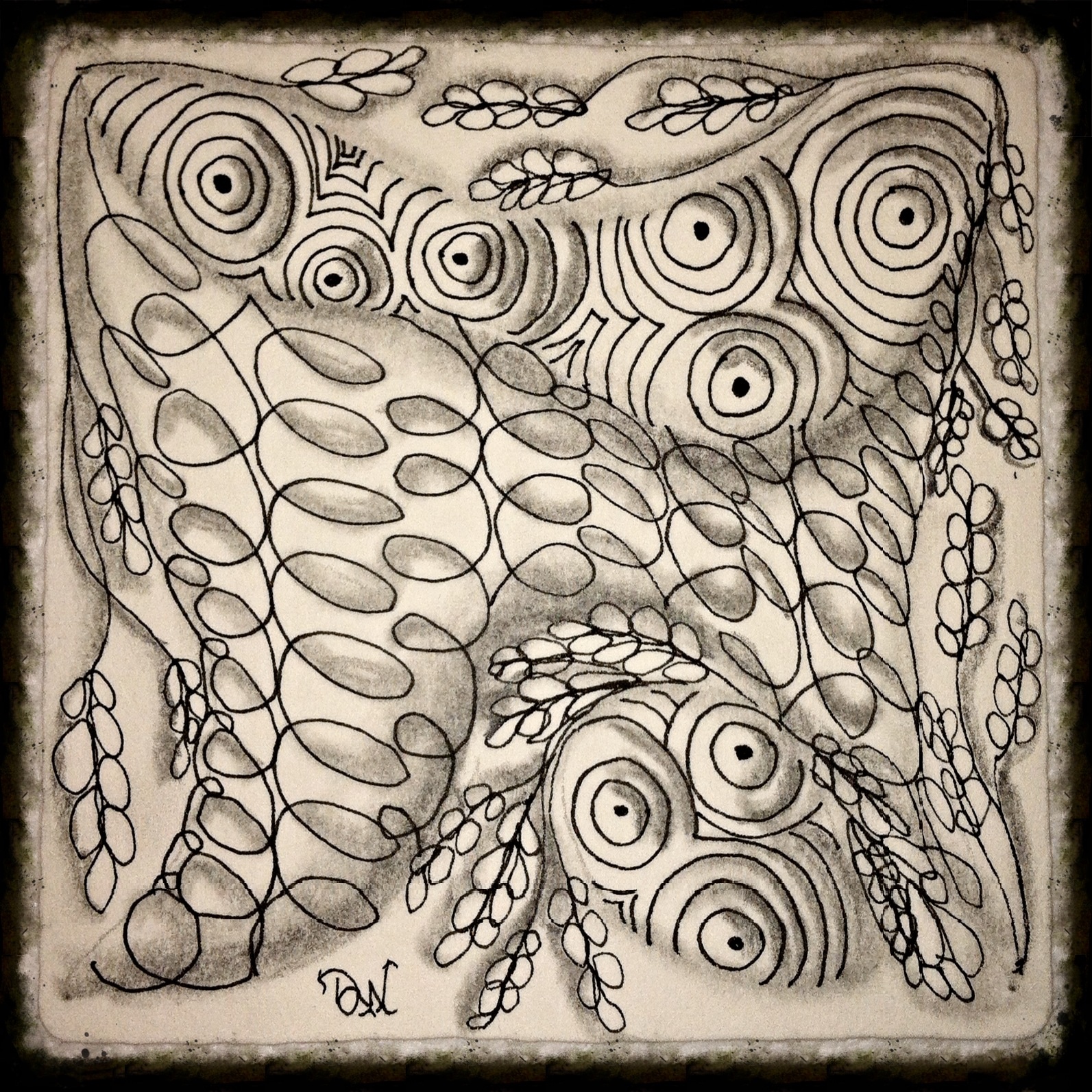 Another great tile! They say “in the eyes of the beholder” … this appears to me as a sandy beach, with sea creature eyes, peering through the seaweed : ) … With that said … I love it and your work! Can’t wait for your own Zentangle creation!!!