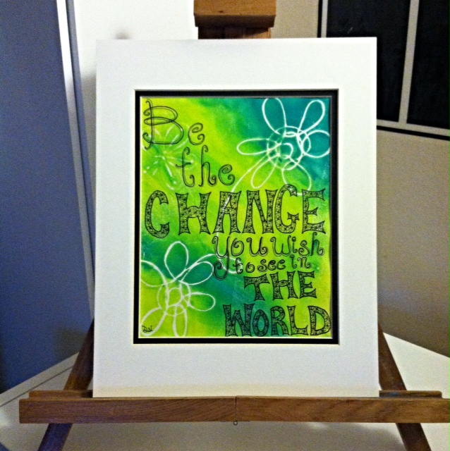 For a chance to win this artwork, just make a donation in any denomination on my page and enter in the Personal Note memo section “Be the Change” so you will be entered into the drawing. Be sure to include either an email address or phone number so I can contact you, should you win. Then on April 25th, I will randomly select one special person to receive this artwork with an exclusive thank you from my mom.