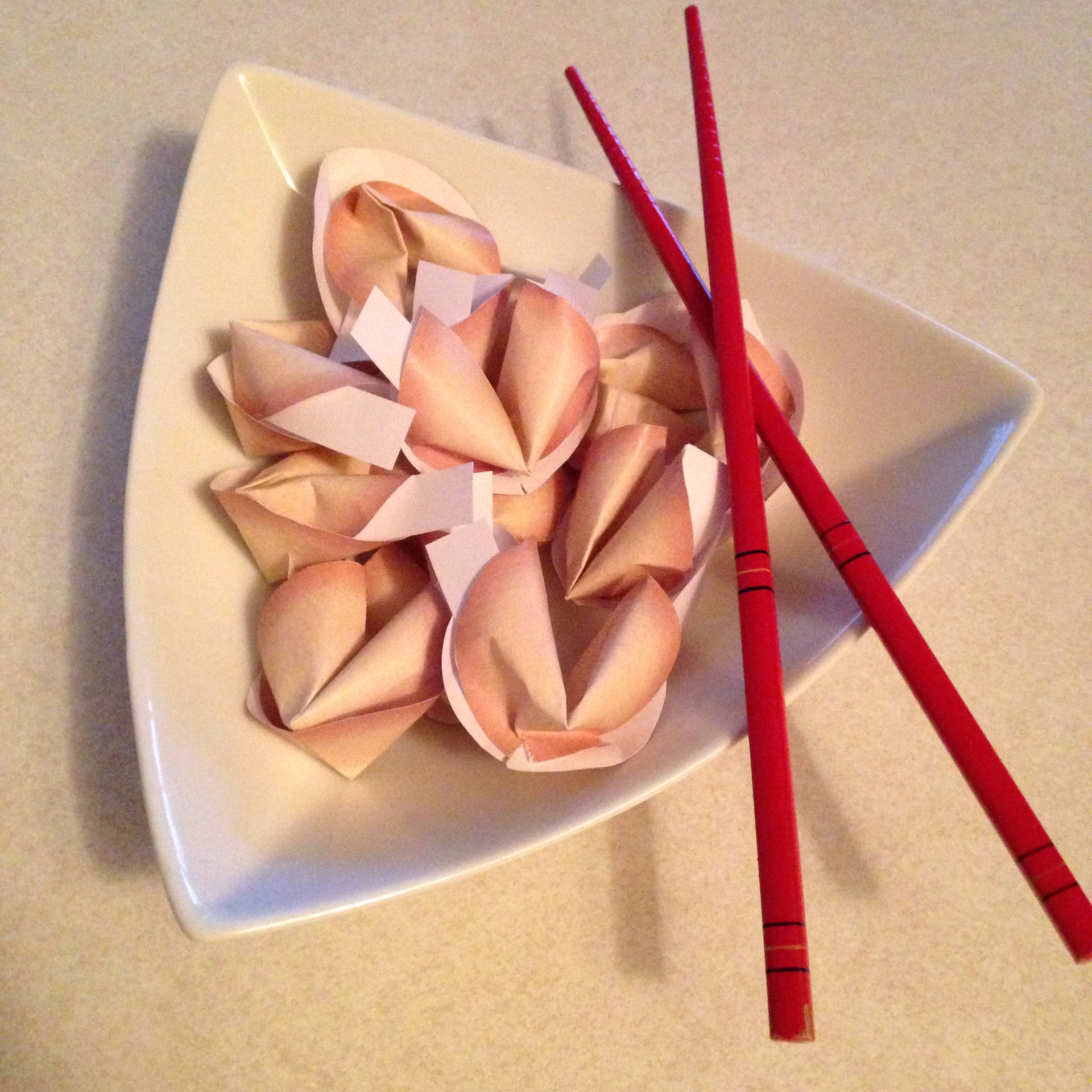 While we don’t go dancing every year, we do make each New Year’s Eve night special. This year, we opted to not to leave the house, but instead celebrate in a unique way. Yesterday I worked on making little origami fortune cookies stuffed with mini-events.